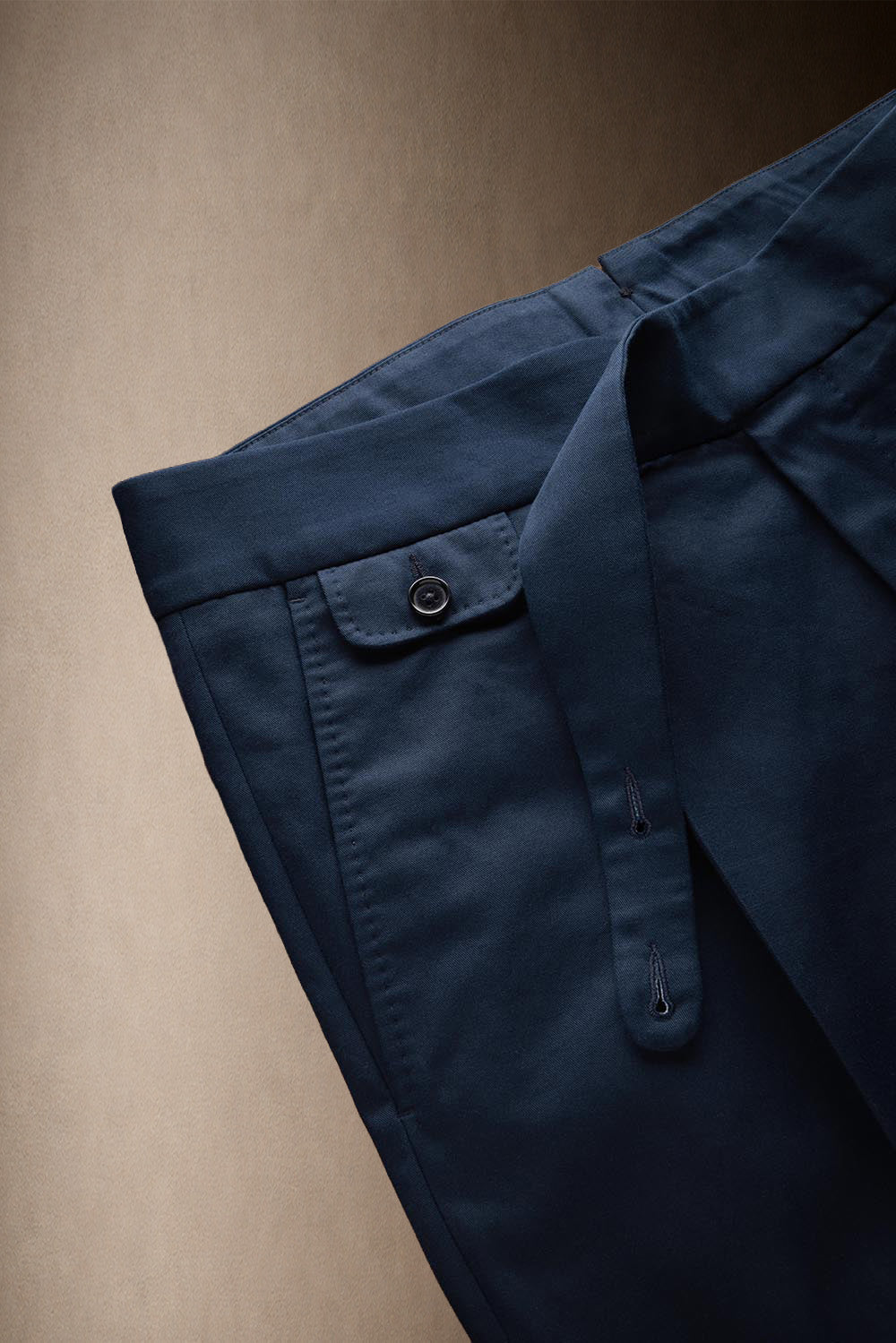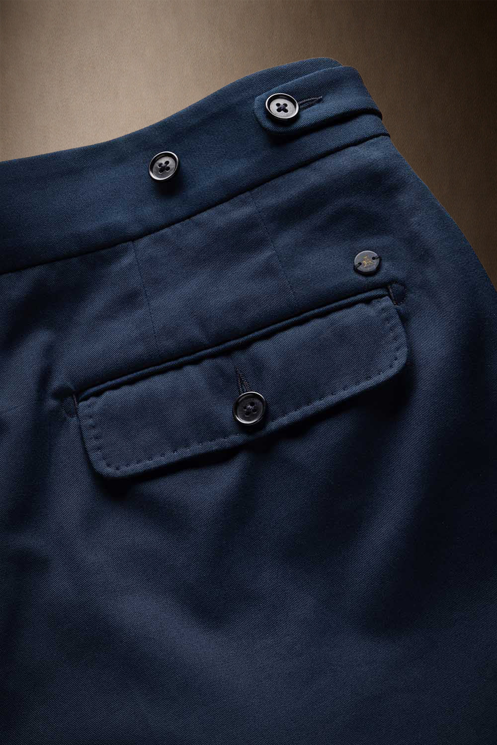 The Scabal Zeals is a luxury Gurkha trouser defined by its high-rise waist and signature front. An extended waistband with adjustable side buttons ensures a precise, tailored fit while adding visual character.