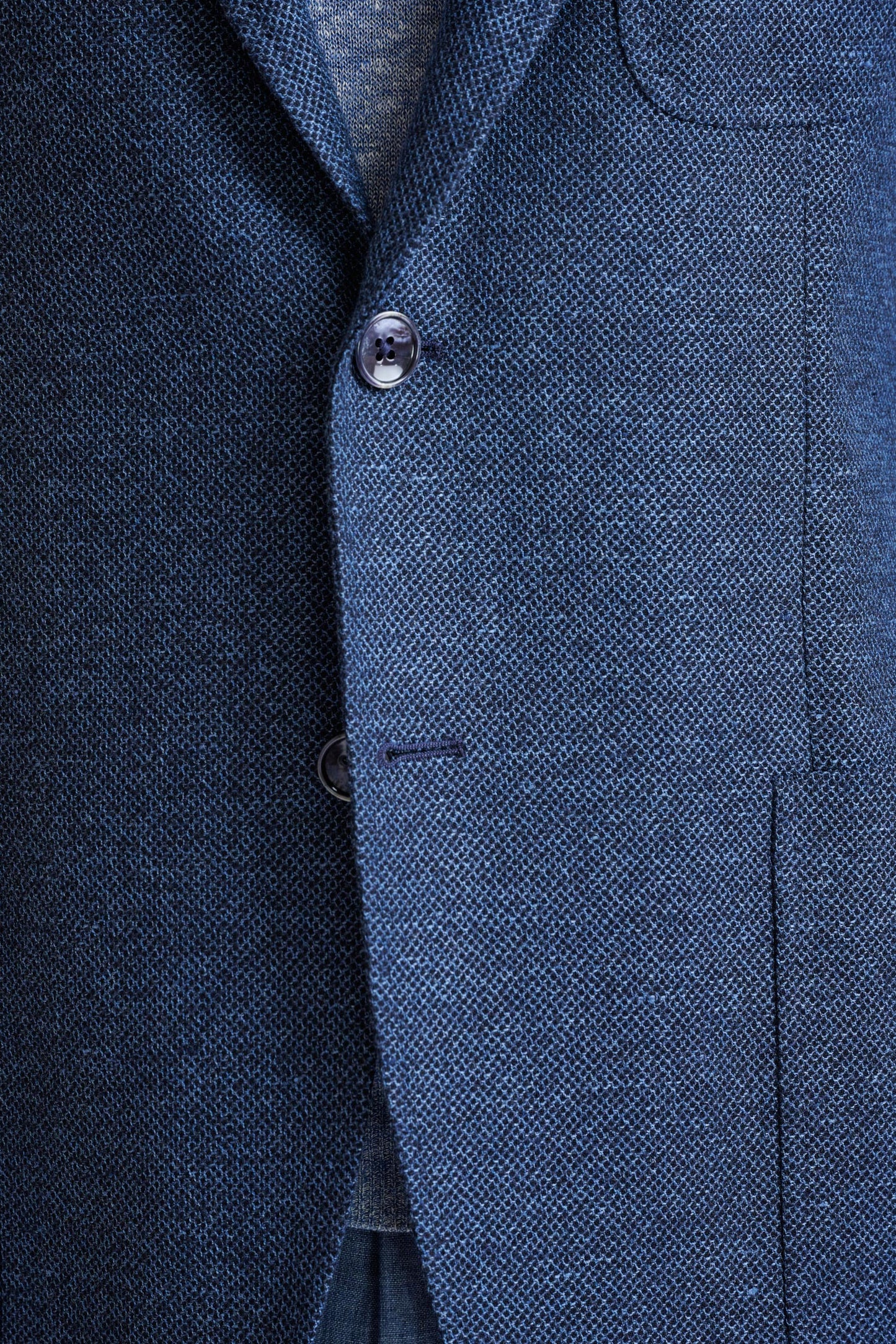 The Scabal Mid-Blue Wool & Linen Kenton Check Jacket Amalfi Trend is a contemporary jacket redefining sophistication with its super lightweight construction. It boasts a soft shoulder design without padding or rollino, offering unparalleled comfort and ease of movement.