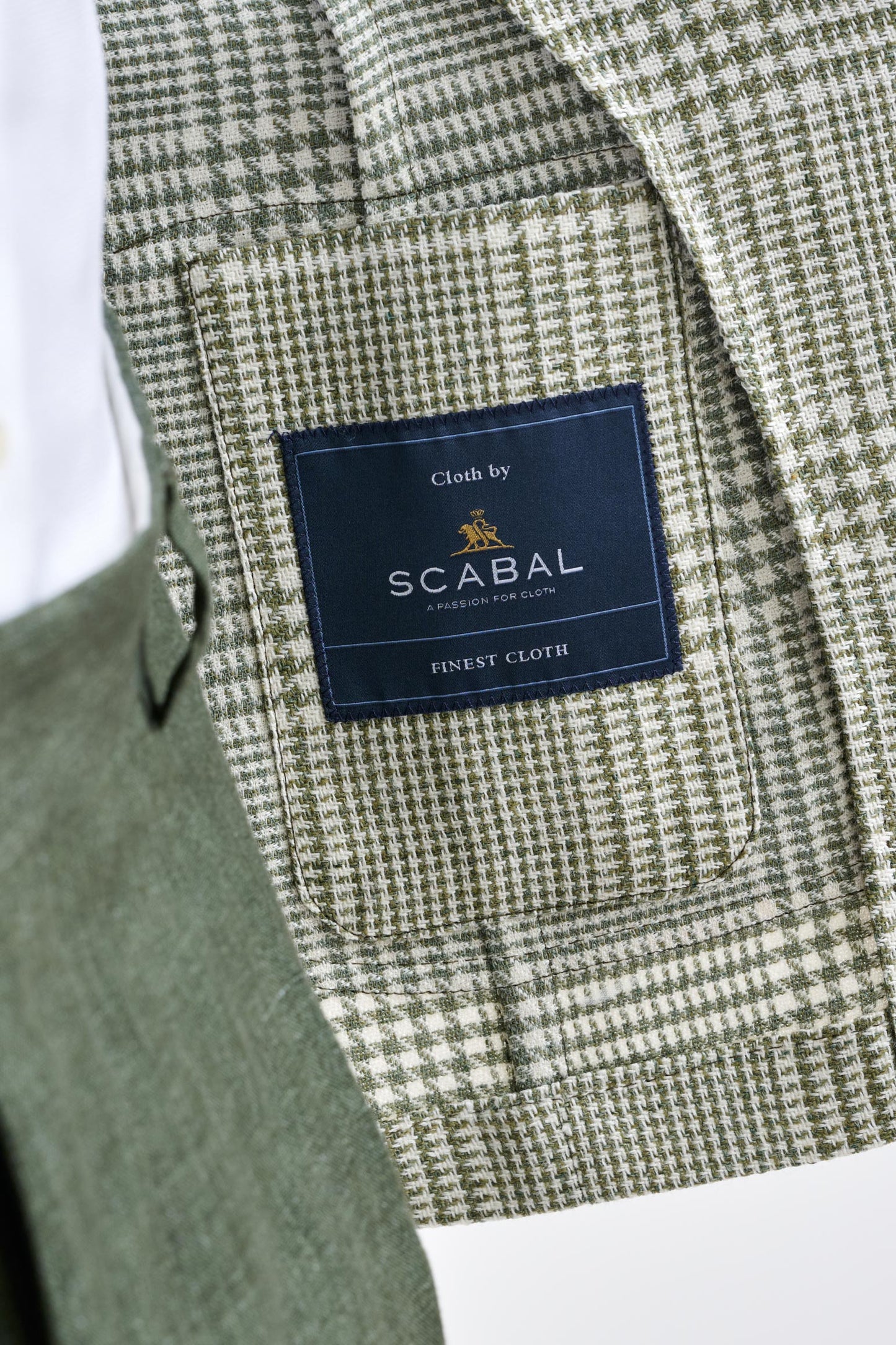 The Scabal Forest Green Wool & Linen Kenton Jacket Amalfi Trend is a contemporary jacket redefining sophistication with its super lightweight construction. It boasts a soft shoulder design without padding or rollino, offering unparalleled comfort and ease of movement.