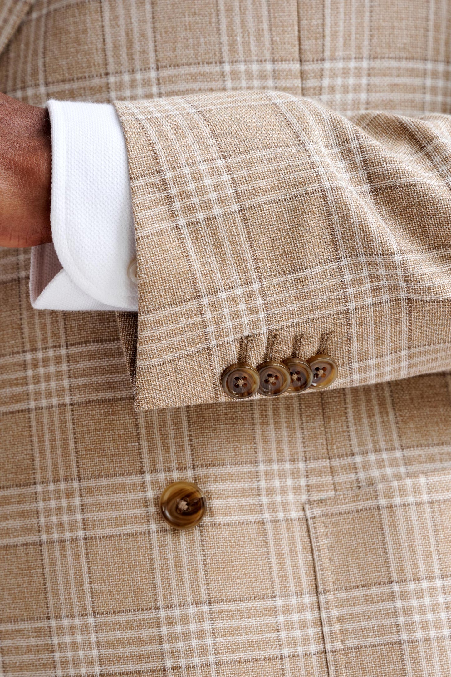Das Beige Wool & Die Baumwoll-Kenton-Jacke Amalfi Trend ist eine moderne Jacke, die mit ihrer superleichten Konstruktion Eleganz neu definiert. Es verfügt über ein weiches Schulterdesign ohne Polsterung oder Rollino und bietet unvergleichlichen Komfort und Bewegungsfreiheit.