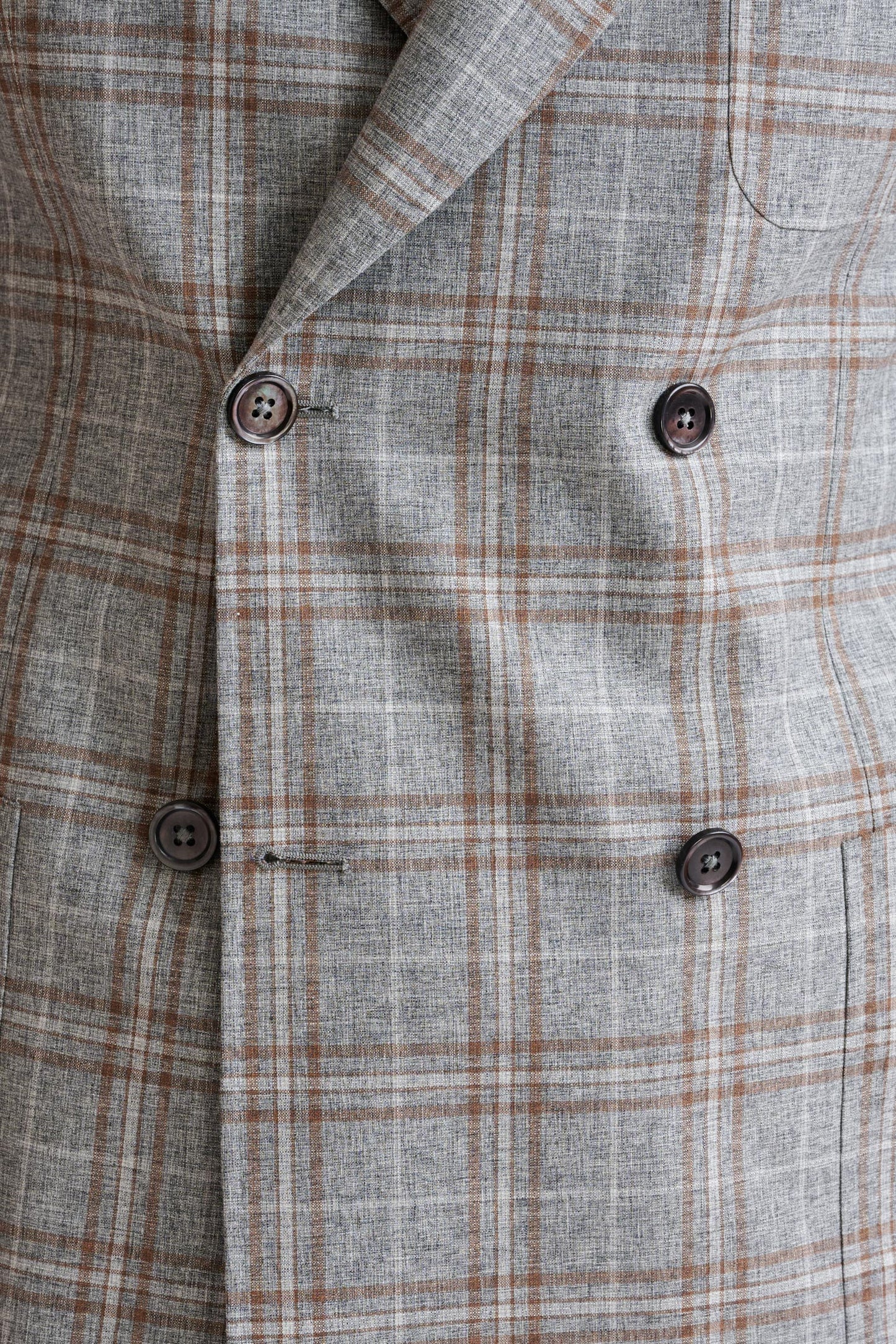 Graubraun karierter Kenton-Anzug aus Wolle und Baumwollseide. Lifestyle