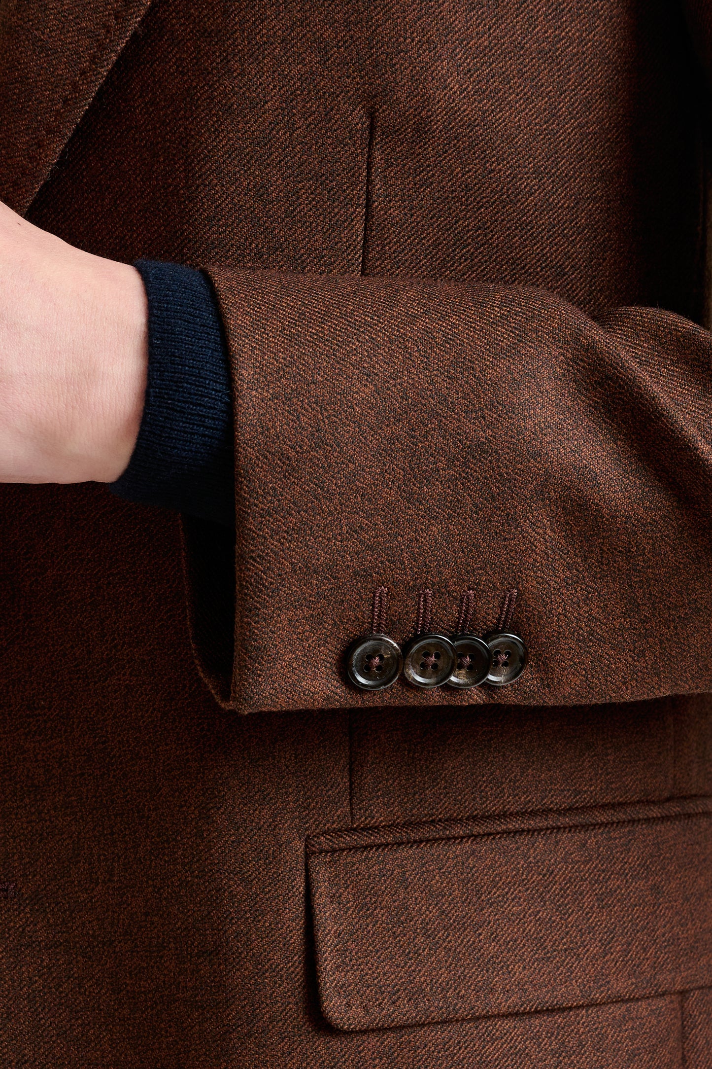 Die Scabal Harmony-Kollektion besteht aus 100 % extrafeiner Merinowolle mit einem Gewicht von 320 g und ist somit ideal für die kühleren Monate. Jeder Artikel wurde mit einem Mouline-Garn gewebt, das ihm einen reichen Charakter verleiht und sowohl die Weichheit der Farben als auch das Handgefühl verbessert. Genießen Sie die reichhaltigen Texturen und raffinierten Farbtöne dieser Kollektion, perfekt für alle, die eine Jacke mit zeitloser Eleganz und Komfort suchen.