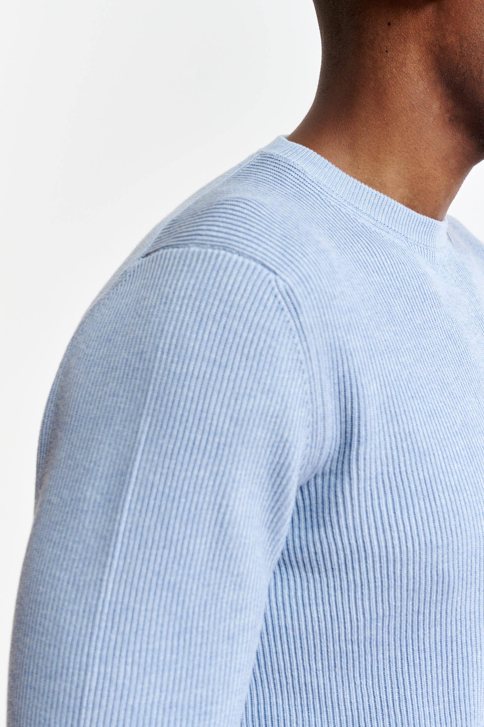 Hellblaue Melange-Harrow-Strickware aus 100 % gerippter Baumwolle