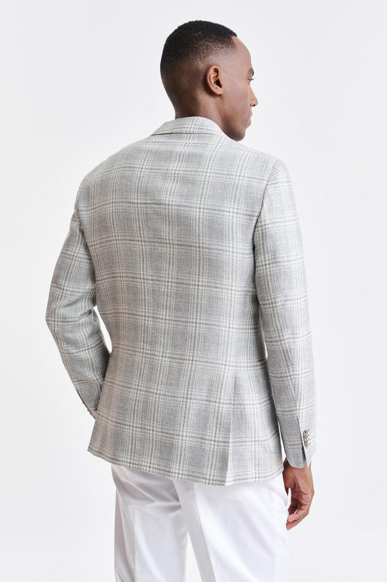 Die Hellgraue Kenton-Jacke aus Wolle und Seide Riviera Trend vereint die entspannte Eleganz der italienischen Küste mit einer zeitgemäßen, ultraleichten Silhouette. Der strukturierte, leinenreiche Stoff kombiniert selbstbewusste Karos mit auffälligen Hahnentrittmustern, die durch eine Palette aus ozeanischen Blautönen und lebhaften Sommerakzenten bereichert werden und klassische Muster modern interpretieren.