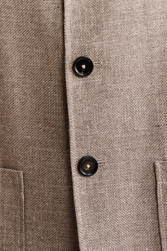 Die Mittelbraune Troy-Jacke aus Wolle und Leinen Jazz besteht aus einer Mischung aus 60 % Wolle und 40 % Leinen und bietet eine perfekte Balance zwischen Weichheit, Wärme und Strapazierfähigkeit. Dank ihrer taillierten Silhouette und ihrem leichten Tragegefühl ist sie eine vielseitige Wahl für jede Jahreszeit.