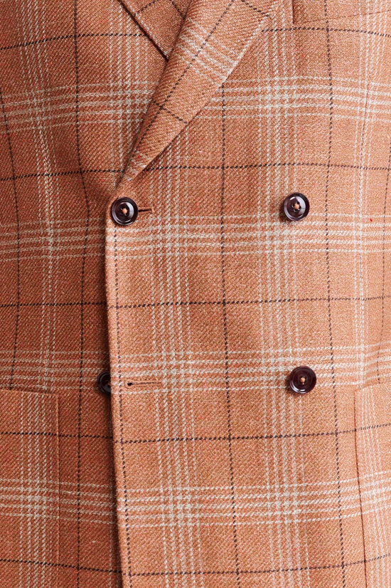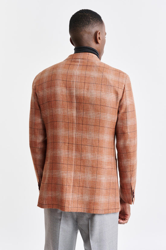 Die Mittelorangefarbene Kenton-Jacke aus Wolle und Leinen Riviera Trend vereint die entspannte Eleganz der italienischen Küste mit einer zeitgemäßen, ultraleichten Silhouette. Der strukturierte, leinenreiche Stoff kombiniert selbstbewusste Karos mit auffälligen Hahnentrittmustern, die durch eine Palette aus ozeanischen Blautönen und lebhaften Sommerakzenten bereichert werden und klassische Muster modern interpretieren.