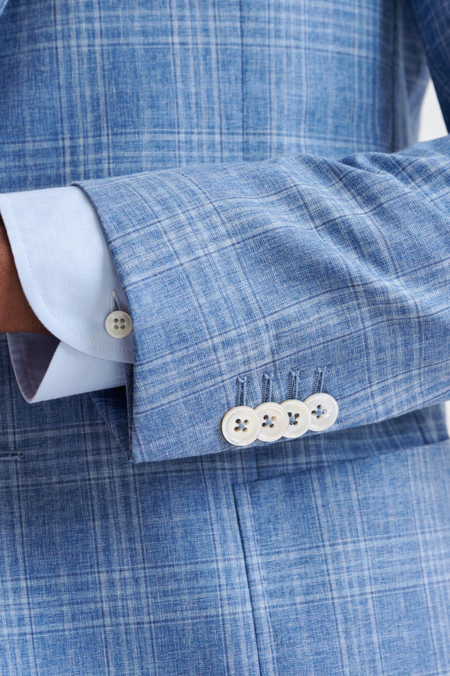Entdecken Sie den Inbegriff von Luxus mit unseren sorgföltig gefertigten Mid Blue Wool & Baumwoll-Kenton-Anzug Lifestyle aus Wolle, Baumwolle und Seide. Dieser aus feinsten Scabal-Stoffen in unserer eigenen Werkstatt hergestellte Anzug verbindet mühelos zeitlose Eleganz mit zeitgenössischem Stil.