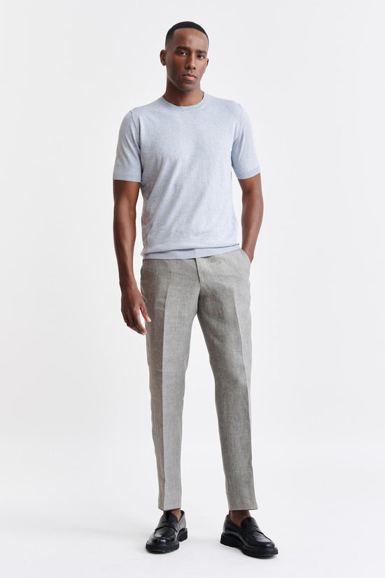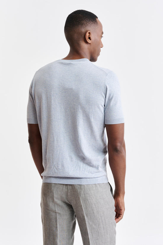 La camiseta de punto Penryn de algodón jaspeado azul claro de Scabal es una prenda lujosa y de fina confección. Presenta una textura ligera y suave, gracias al uso de algodón puro de galga 18. Las mangas cortas añaden un elemento informal y cómodo a la prenda, haciéndola adecuada para diversas ocasiones.