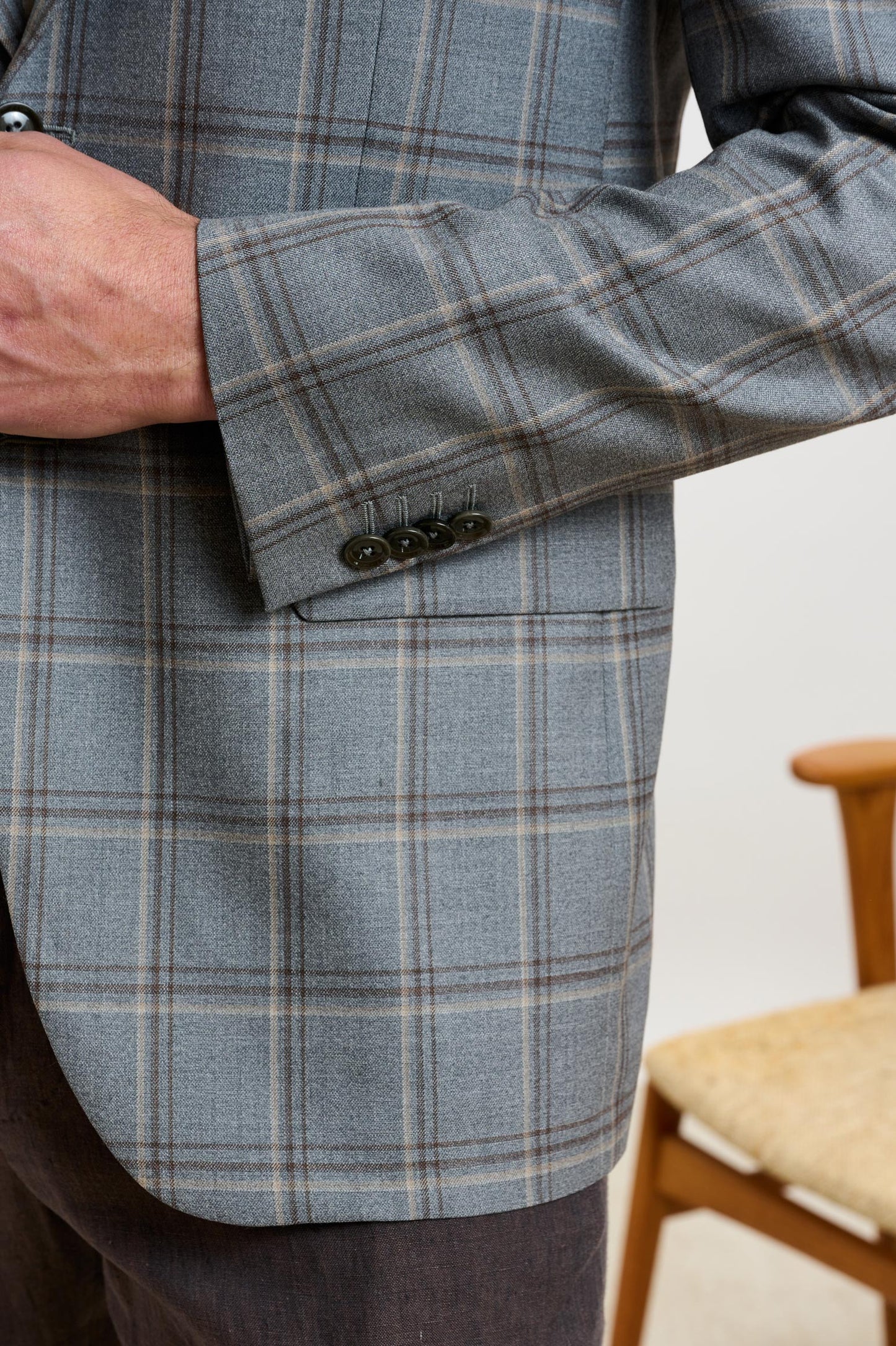La chaqueta Mosaic Kenton gris oscuro de Scabal es una chaqueta contemporínea que redefine la sofisticación con su confección superligera. Presenta un diseño de hombros sin acolchado ni rollino, que ofrece una comodidad y facilidad de movimiento sin igual.