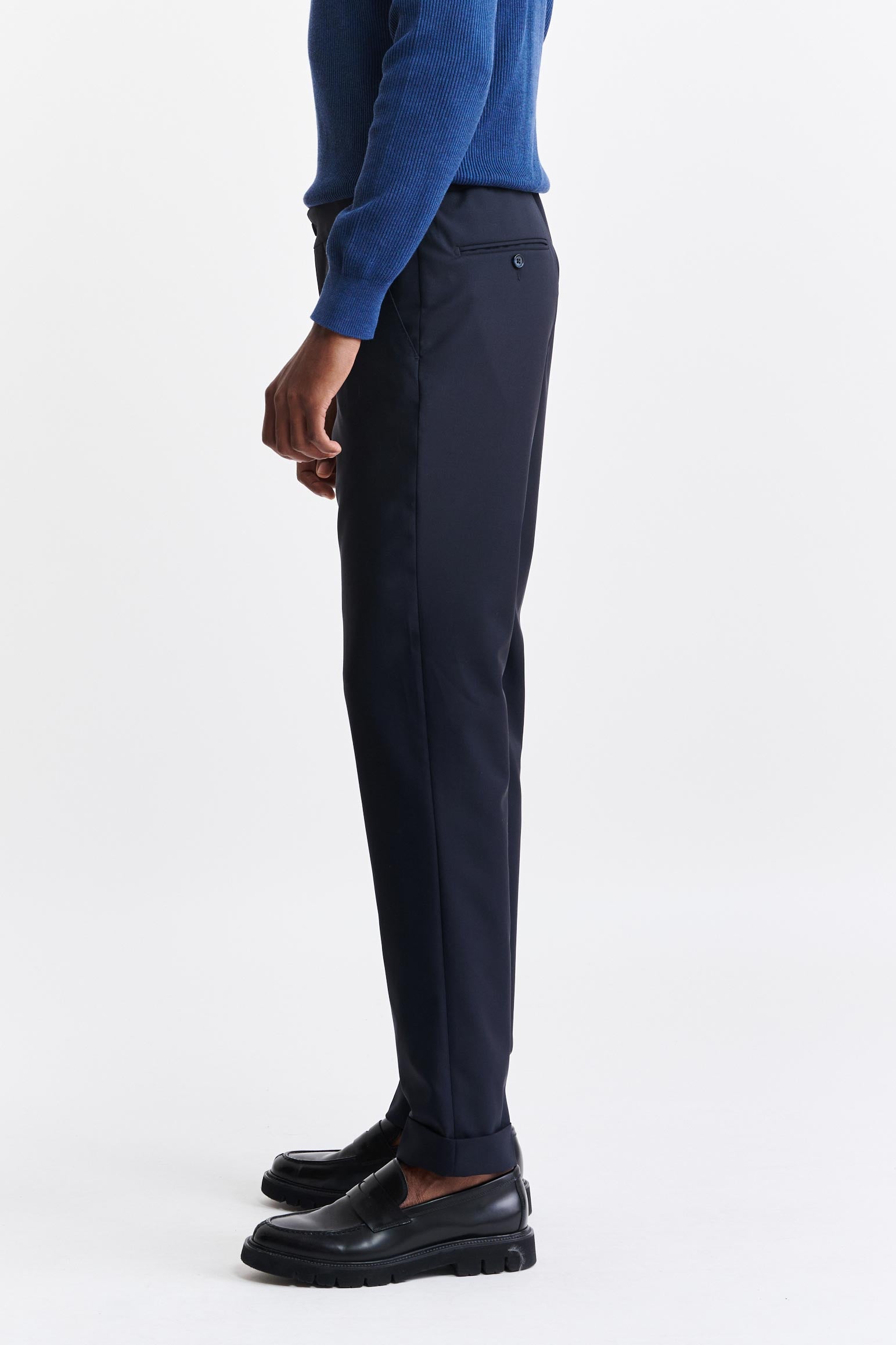 Ces Pantalon Bleu Foncé 100% Laine Perth À Cordon Coulissant Capri coulissant luxueux, confectionnés dans notre propre atelier, allient sophistication et confort. Le pantalon bleu foncé 100 % laine Perth à cordon coulissant Capri de Scabal est doté d'une fermeture à glissière et d'un cordon coulissant, d'un élastique latéral souple pour plus de confort et d'une coupe sur mesure qui allie une apparence soignée à une sensation de confort. Idéal pour diverses occasions, ce pantalon allie à la perfection style et fonctionnalité, ce qui en fait un vêtement polyvalent et raffiné indispensable à toute garde-robe.
