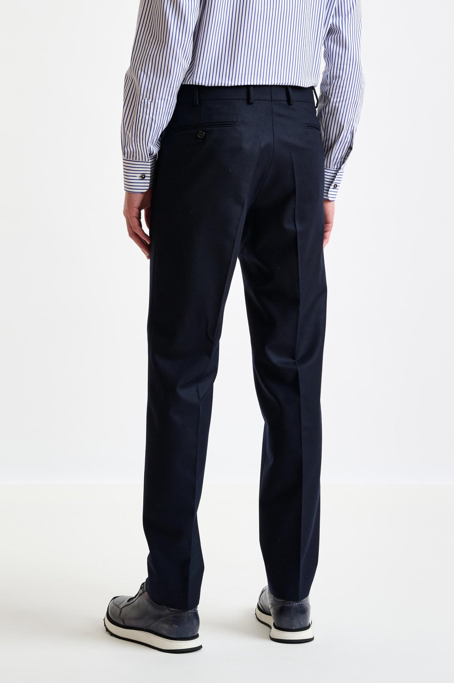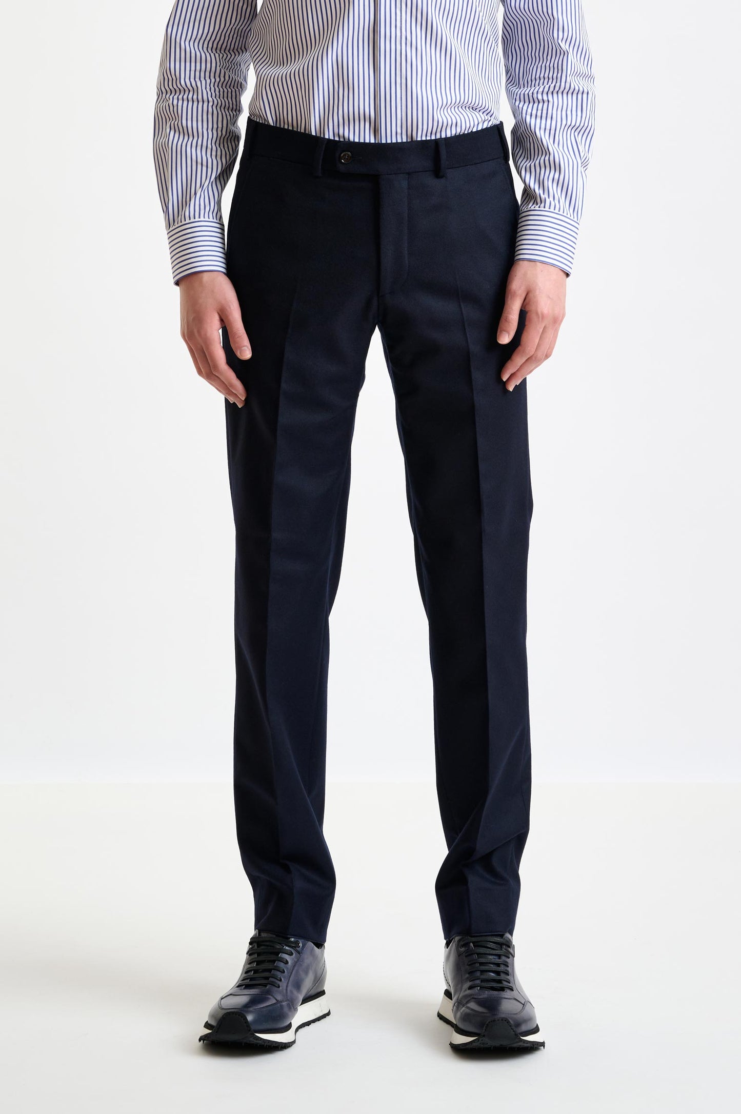 Pantalon Farley en Laine Super 100's Bleu Nuit Flanelle Saxony