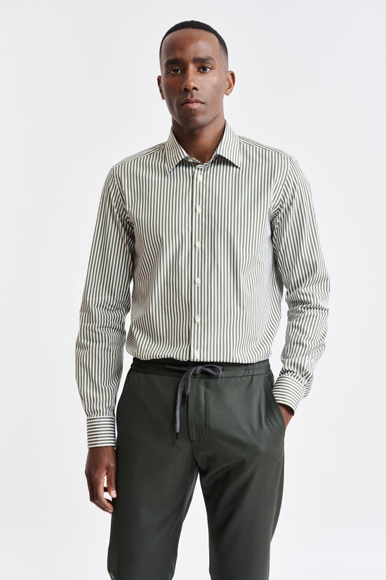 Laissez-vous séduire par l'opulence de notre chemise formelle en twill de coton blanc uni, méticuleusement confectionnée à partir du meilleur coton égyptien. Fabriquées en Europe selon les normes de qualité les plus strictes, ces chemises incarnent la sophistication et le confort. Ornées de boutons en nacre, elles témoignent d'un goût raffiné et peuvent facilement rehausser votre look, qu'il soit décontracté ou professionnel.