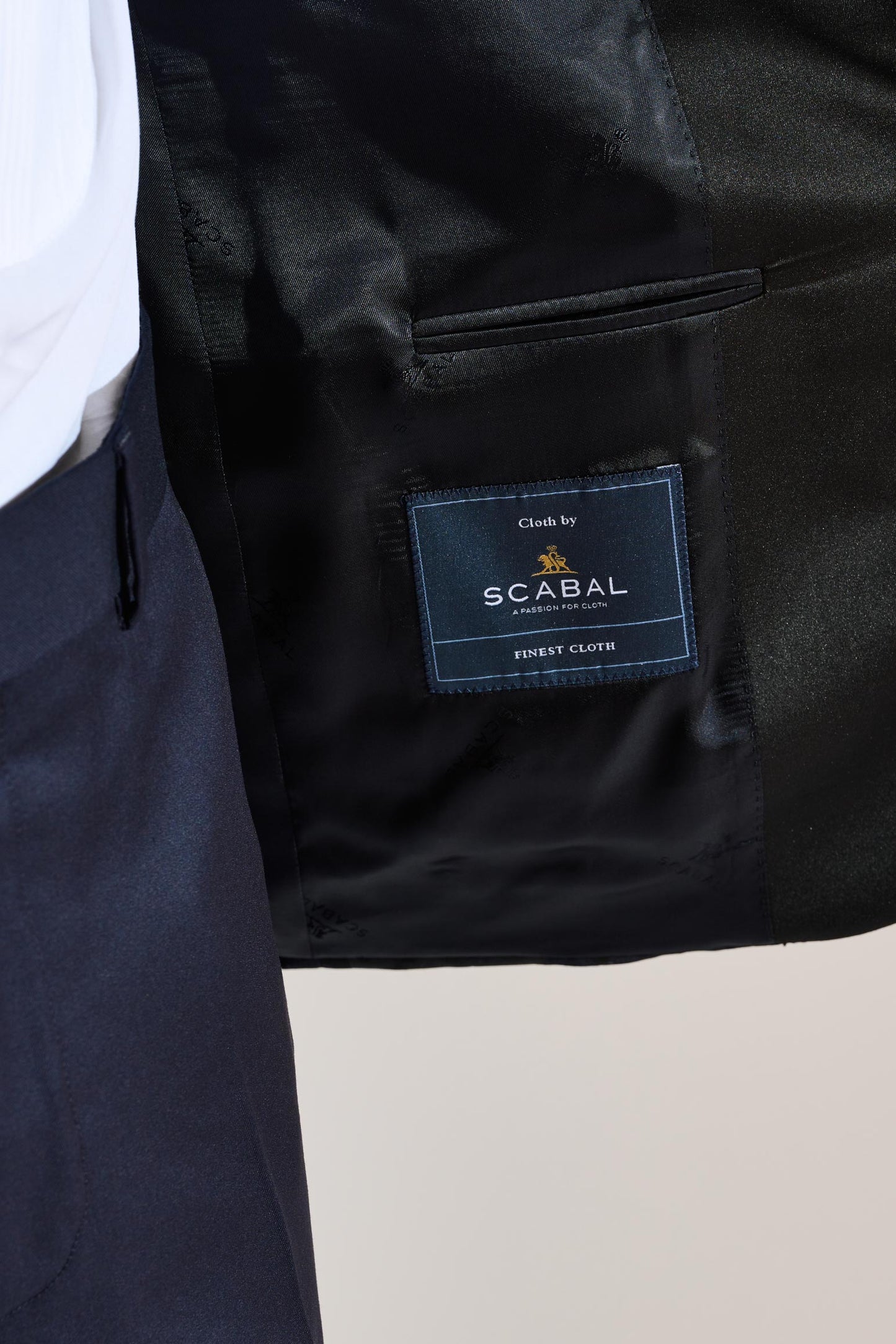 Laissez-vous séduire par le raffinement de notre luxueux smoking Scabal Camouflage Bleu Festival, qui respire l'élégance et la tradition avec son col classique en pointe, sa fermeture à un bouton et ses poches passepoilées discrètes.
