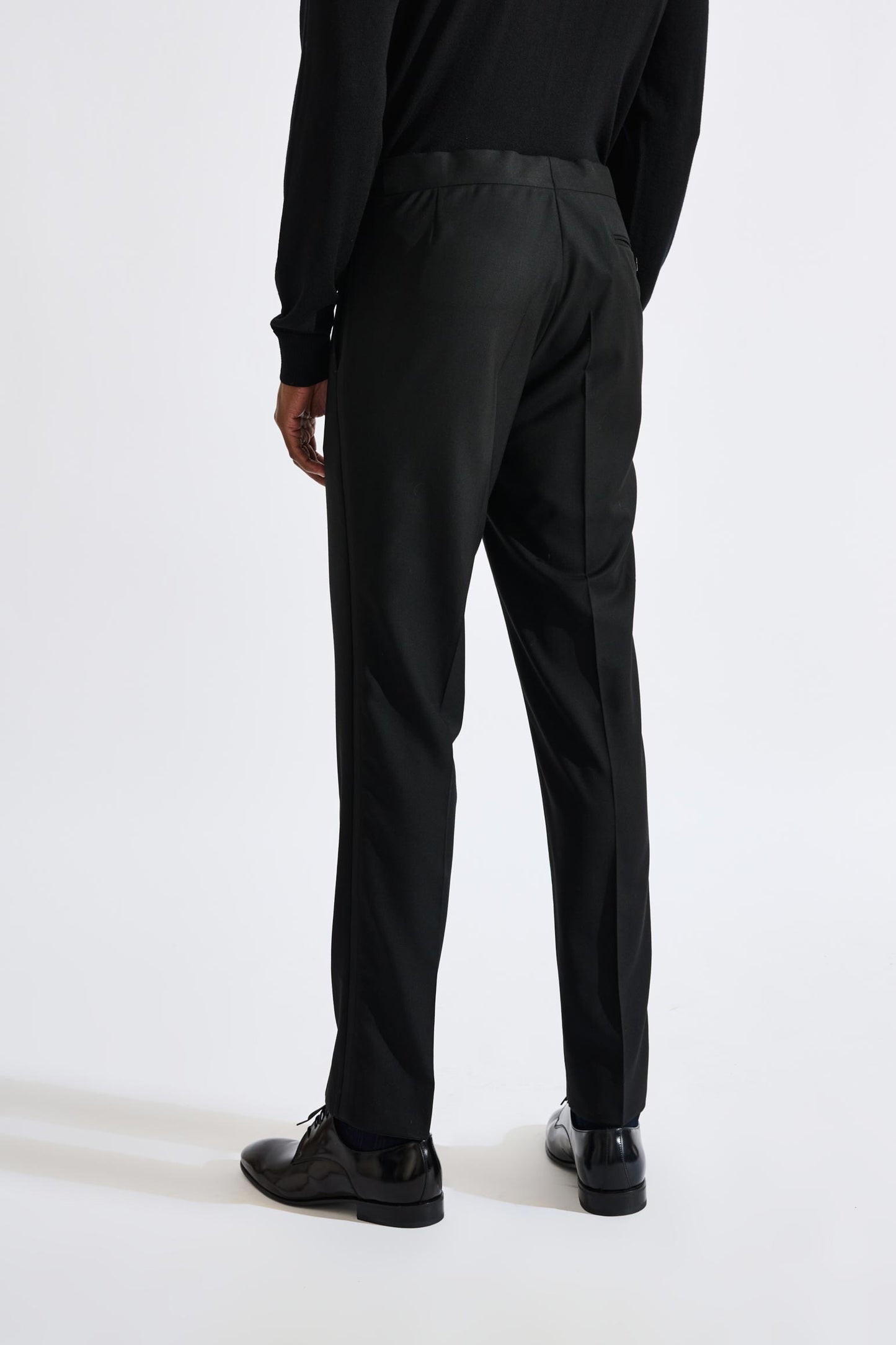 Laissez-vous tenter par la sophistication de notre smoking Scabal Noir Soho à col cranté New Deluxe, qui respire l'élégance et la tradition avec son col cranté classique, sa fermeture à un bouton et ses poches passepoilées discrètes.