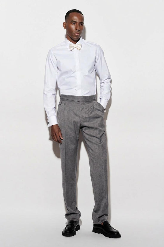 De Lichtgrijze 100% Wollen Gurkha-Broek New Deluxe is een luxe Gurkha-broek die zich onderscheidt door zijn hoge taille en kenmerkende voorkant. Hij heeft een verlengde tailleband met verstelbare knopen aan de zijkant voor een perfecte pasvorm. De witte katoenen Gurkha-broek Cashmere Cotton is met precisie en passie zorgvuldig vervaardigd. Het is een klassieke broek met een verfijnd, moeiteloos elegant silhouet en onderscheidt zich door het ontwerp en de afwerkingsdetails die u van Scabal mag verwachten.