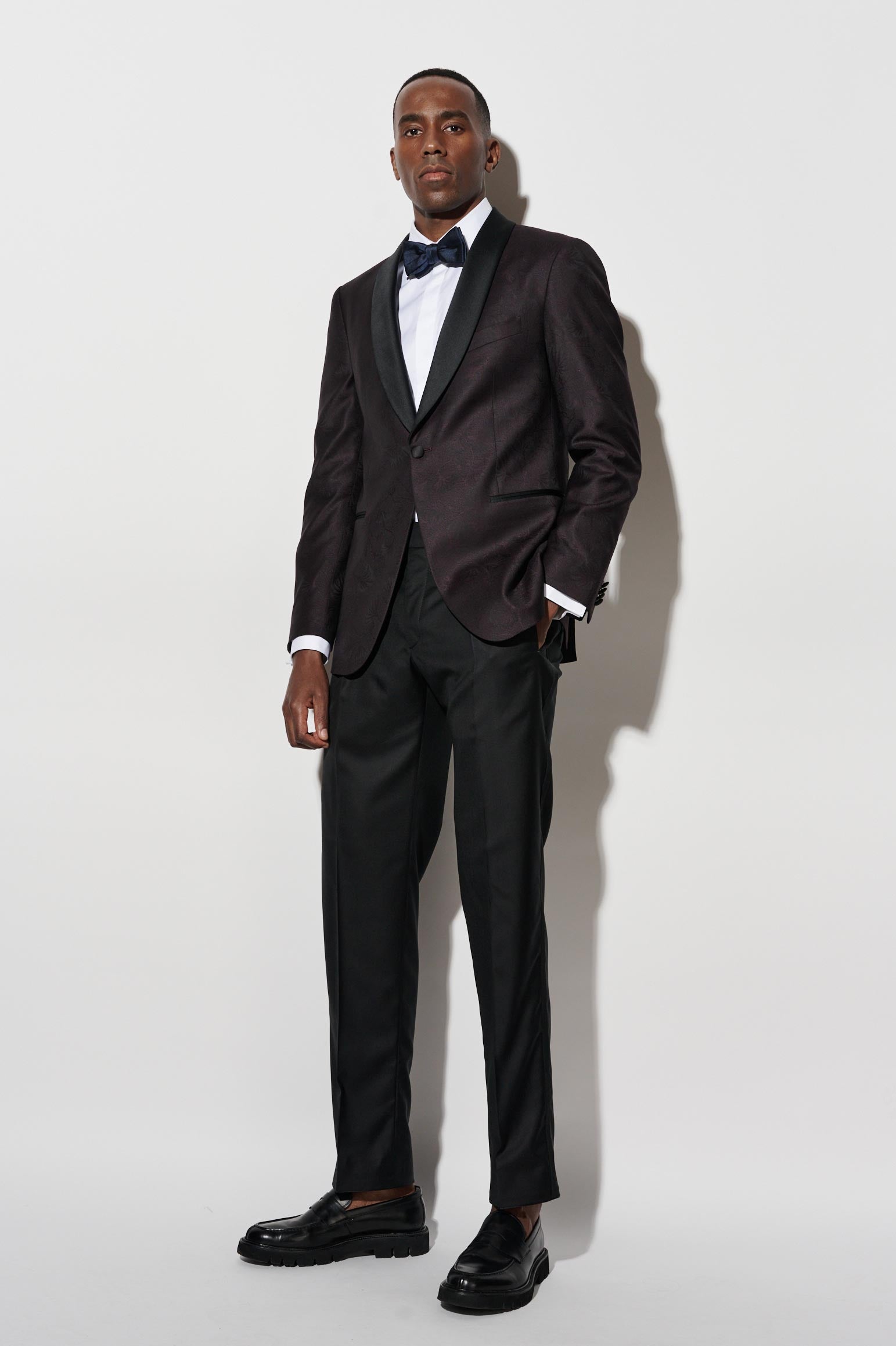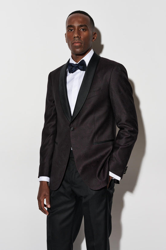 The Dark Red Wool Super 100's Soho Tuxedo Riviera Trend blends the relaxed elegance of the Italian coast with the contemporary refinement of the Soho silhouette. The 100% Super 100’s wool is woven into a fine twill, offering a superior finish with a dry hand feel—perfect for the warmer months.