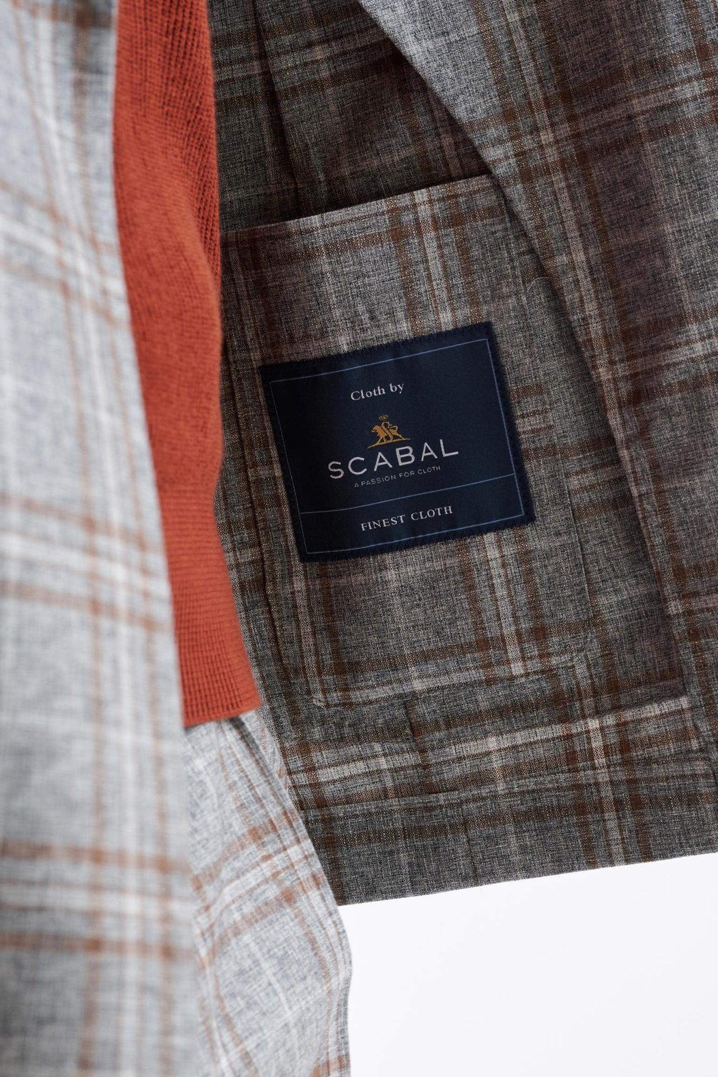 The Scabal Grey Brown Check Wool & Cotton Kenton Jacket Lifestyle is a contemporary jacket redefining sophistication with its super lightweight construction. It boasts a soft shoulder design without padding or rollino, offering unparalleled comfort and ease of movement.
