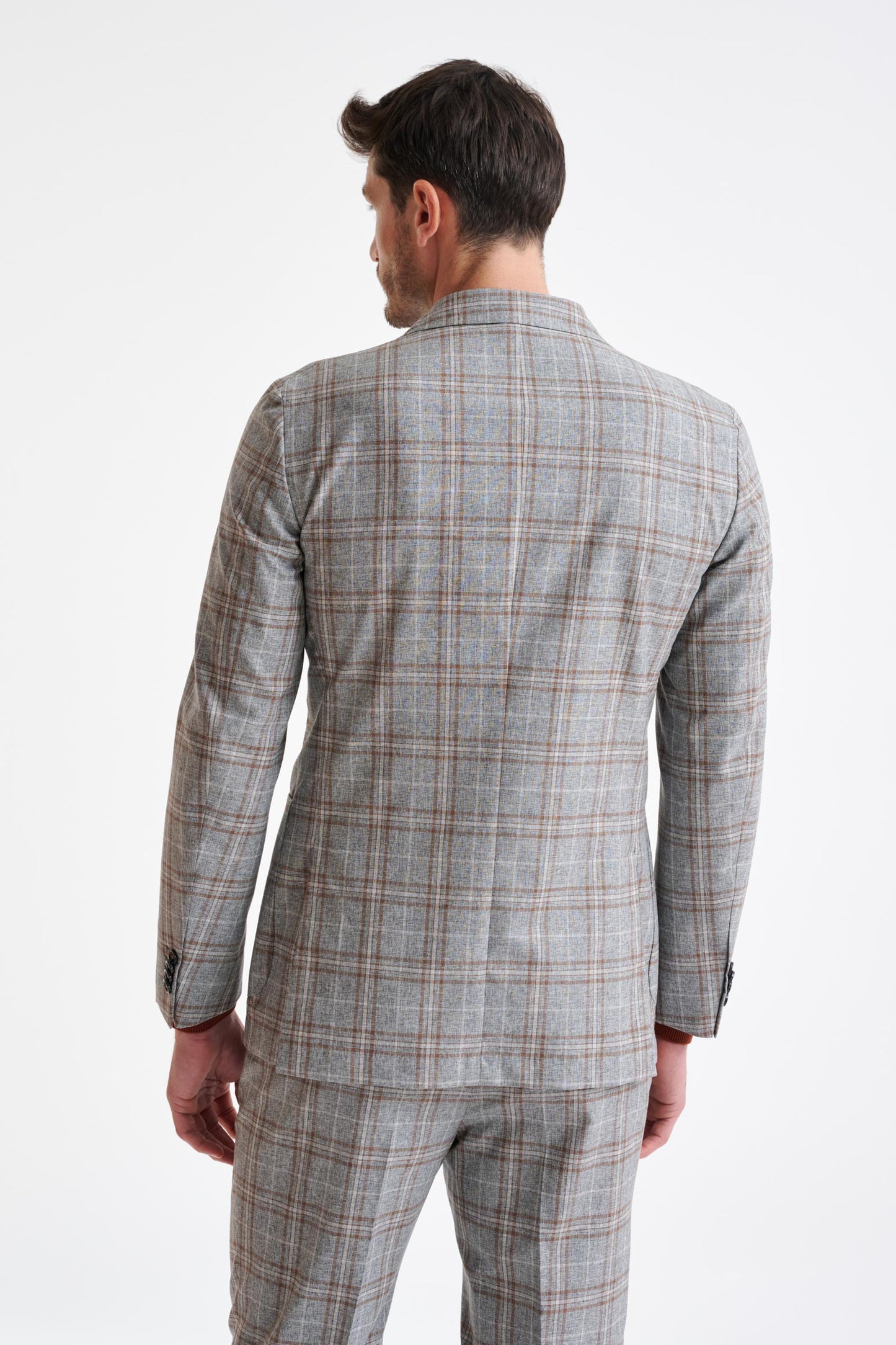 Grey Brown Check Wool & Cotton Kenton Jacket Lifestyle