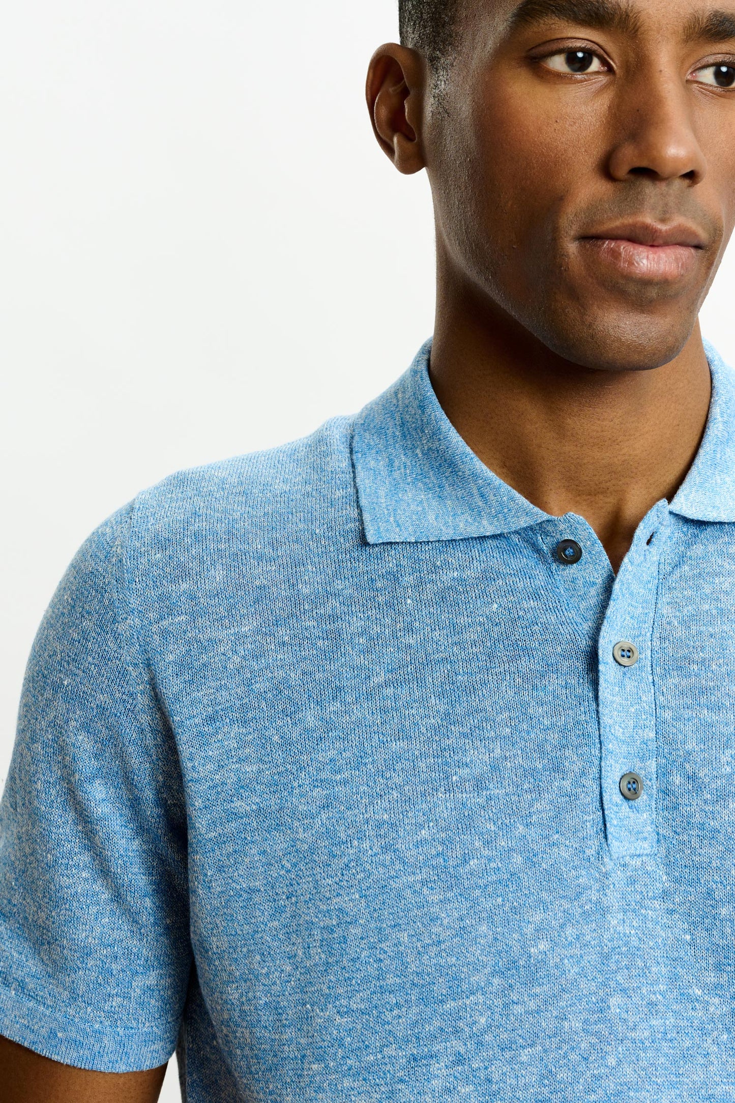 Cerulean Melange Linen & Cotton Kelso Knitwear Polo