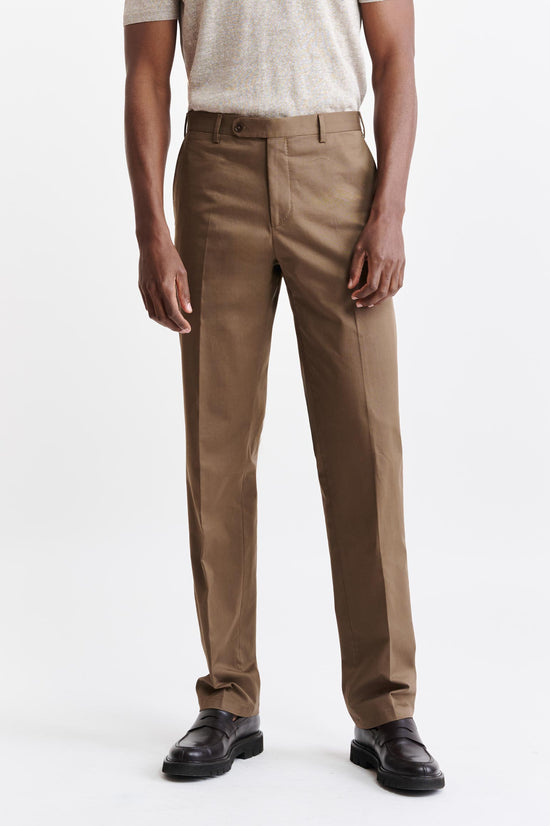 Meticulously crafted, the Medium Brown Cotton Xander Trousers Cashmere Cotton combine timeless elegance with all-day comfort. Soft and refined, they feature a regular fit and a clean, modern silhouette for effortless sophistication.