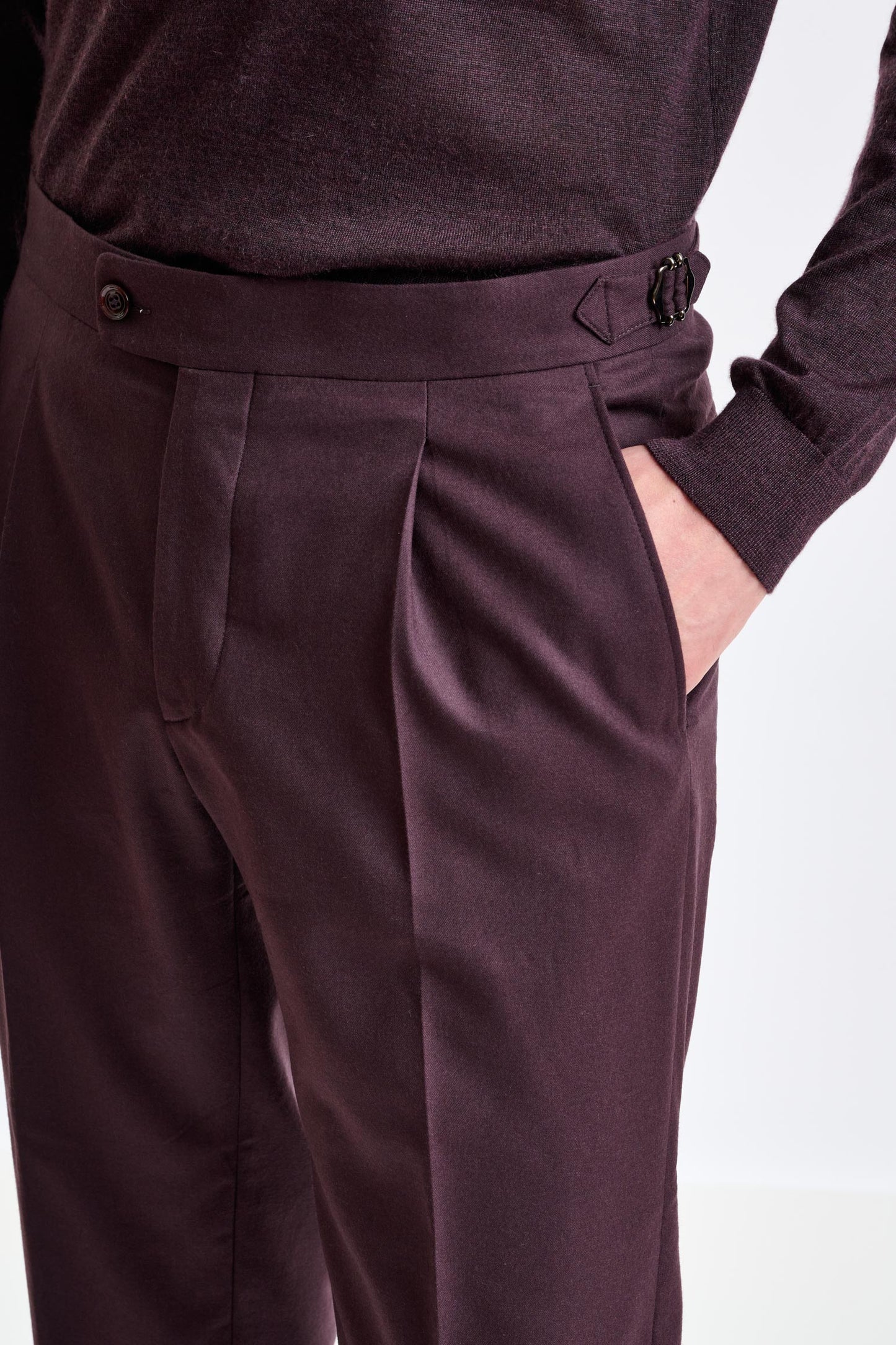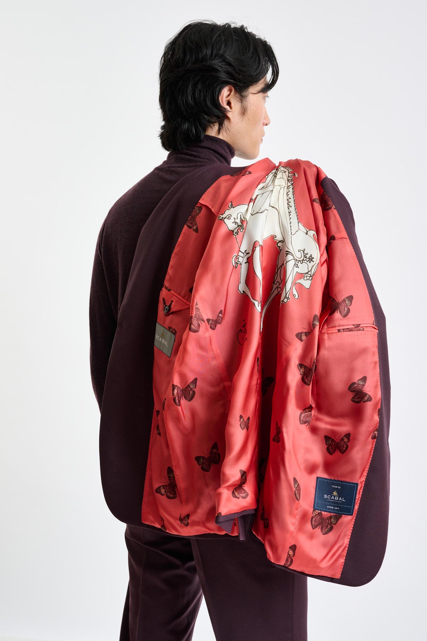The Scabal Red Super 160's Wool Kenton Suit Magus is a contemporary suit redefining sophistication with its super lightweight construction. It boasts a shoulder design without padding or rollino, offering unparalleled comfort and ease of movement.