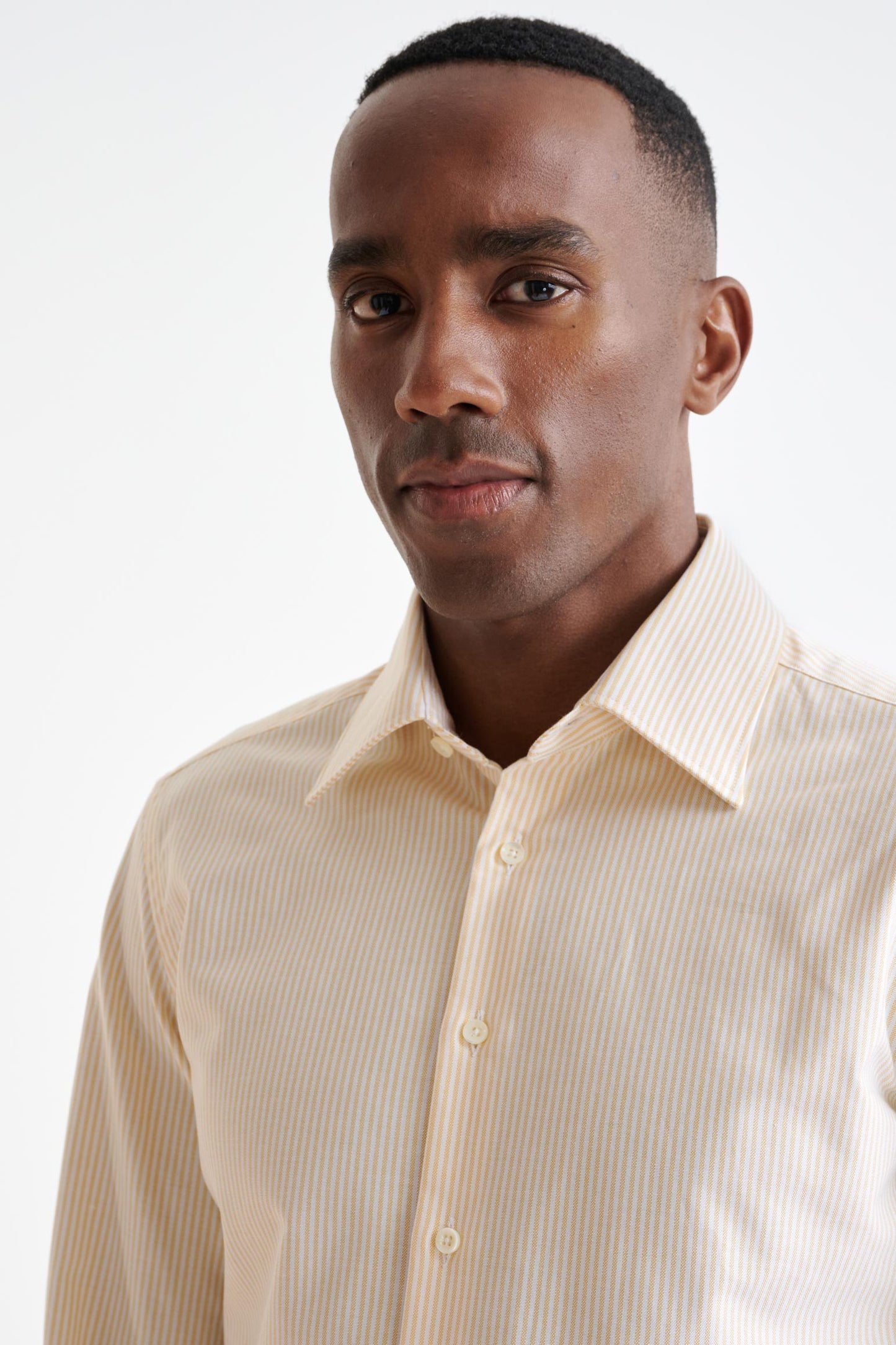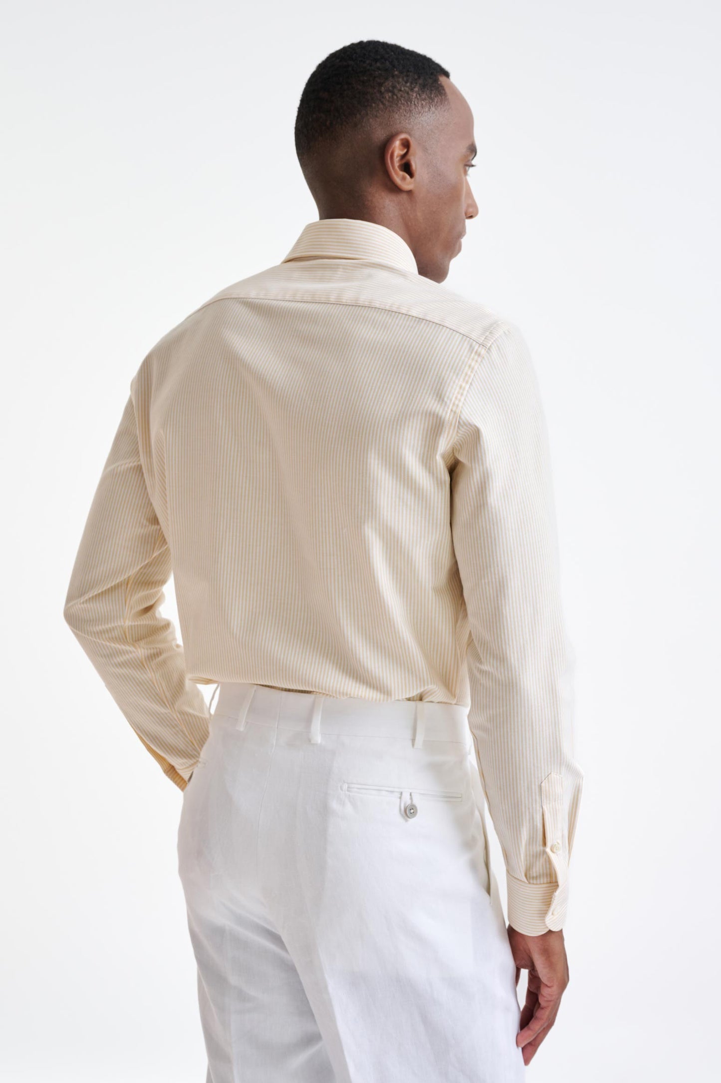 Striped White & Yellow 100% Cotton Fine Twill Formal Shirt